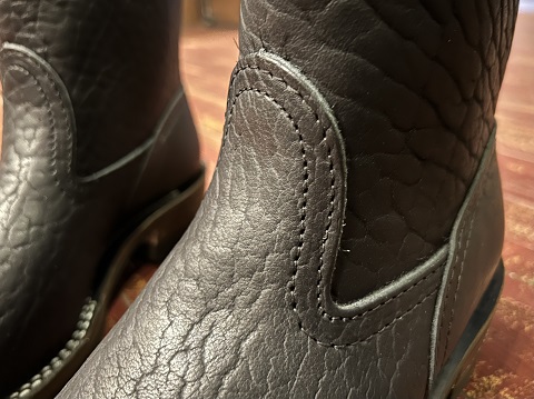 因みにウエスタンスタイルの一足なので、例に倣ってウエスタントゥ仕様。