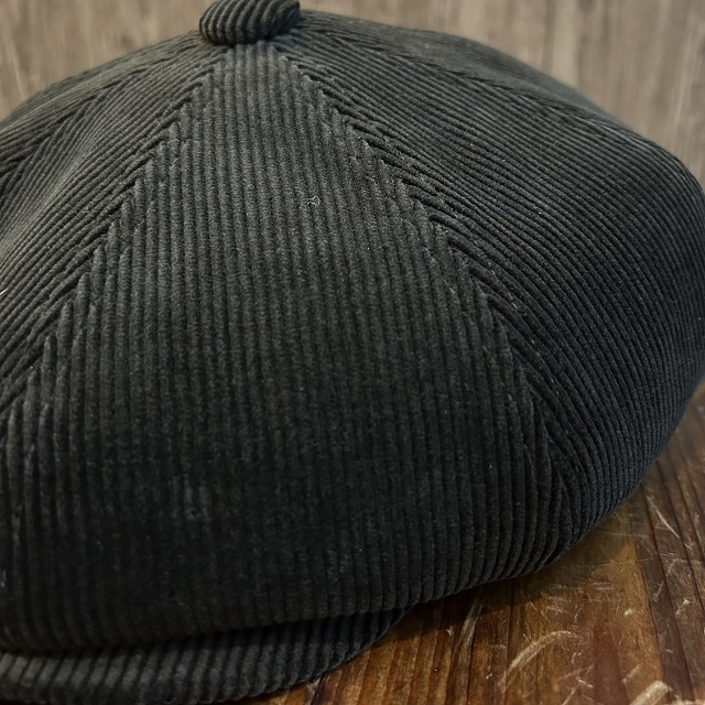 レーヨンを混ぜる事で、光沢感と自然なドレープ性を表現した9Wコーデュロイのキャスケット。