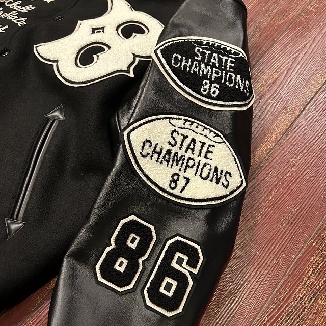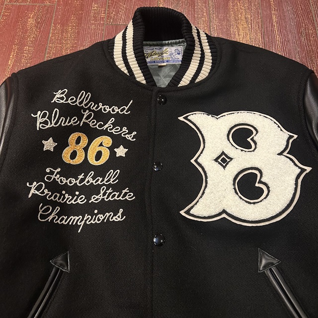 右胸に記された「Prairie State」とは彼らが拠点を置くイリノイ州のニックネームで、1986年と87年に州の大会で優勝した記念のシニールや刺繍が、あらゆる部分にデコレーションされた豪華な一着。